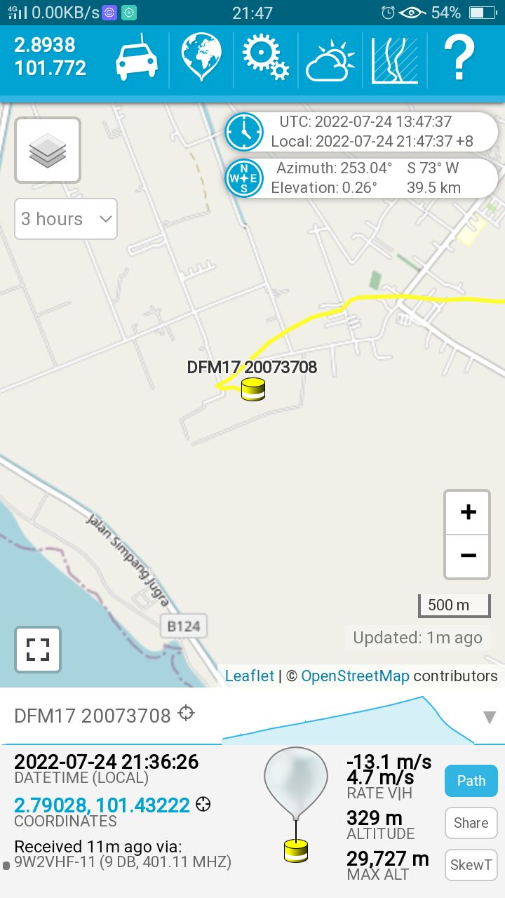 Kelihatan Zak 9M2ZAK dan Saiful 9W2DCW berjaya menemui peranti radiosonde IMS-100 yang dilepaskan dari Singapura.