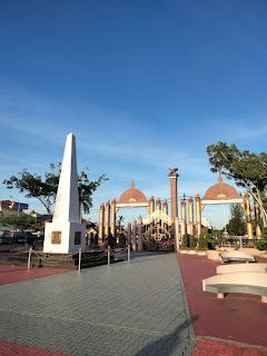Selaras meriam berdiri megah di hadapan monumen peringatan yang mengadap matahari. Cuaca petang itu sangat cerah dan baik sekali.